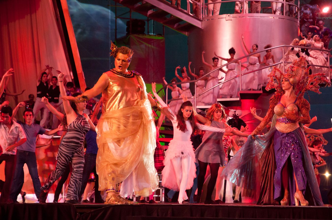 Y sigue la fiesta del vino con la que, para mí, fue la mejor parodia de las tres. La Madre Cepa anuncia que llegó la hora de elegir a la Reina del vino. Un carro trae desde atrás a las cuatro candidatas. Tiran besos y saludan sutilmente, como esa princesa que se lastimó toda porque había un poroto debajo del colchón sobre el que había dormido. Ya en el escenario, saludan y se pelean por ser una más que la otra. A la hora de la elección, claro, la única que festeja es la elegida, mientras las demás, de los pelos, lloran "¡fraude, fraude!".