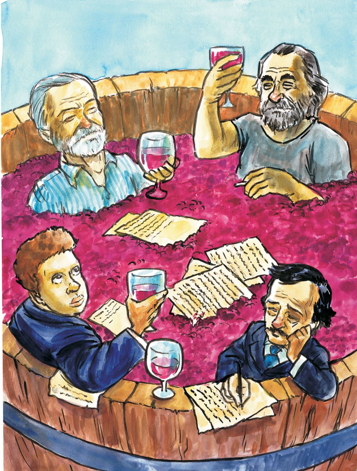 Todos, en su mayoría, escribieron los mejores textos de la historia de la literatura mundial. Lo cierto es que el vino los acorraló. Los fue engañando. Cayeron en su falda y poco a poco la cepa del solor les fue bebiendo la vida.