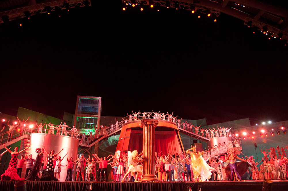En otro momento, la Madre Cepa presenta a cada uno de sus hijos varietales. Todos bailan repartidos entre las terrazas del escenario y el escenario mismo. Pero son interrumpidos por una manifestación. Como los piqueteros que miramos por TV, salen desde atrás carretelas con carteles al grito de “patero y manzanilla, mistela y moscato”. Vinos plebeyos, vinos segregados que reclaman su lugar en esta historia. Y que se integran también.